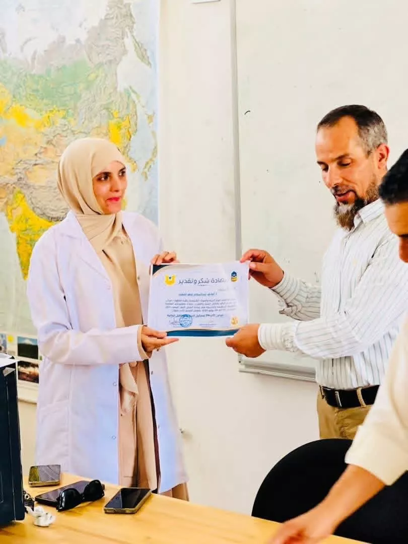 اختتمت اليوم الخميس 24 يوليو 2025 بكلية العلوم – غريان، فعاليات الورشة التطبيقية بعنوان "قياس pH وEC لمحاليل التربة والمحاليل المائية"، والتي نظمها قسم علوم البيئة والموارد الطبيعية ضمن خطته التدريبية للعام الجامعي الجاري.