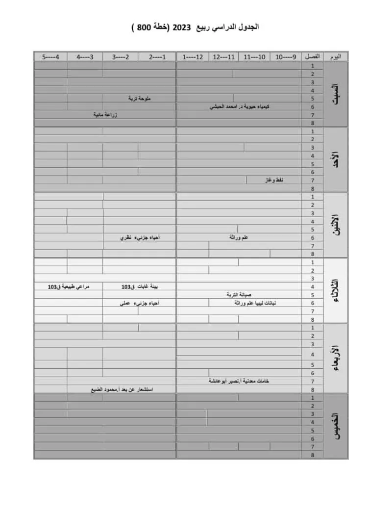اليكم الجدول الفصلي لربيع 2023 لكلى الخطتين